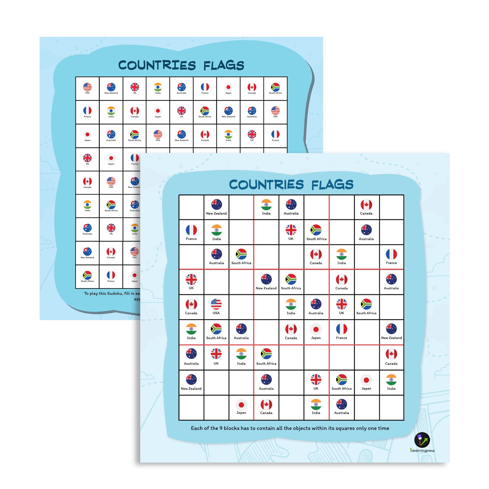 Embark on an international puzzle journey with our Countries Flag Sudoku, where logic meets cultural exploration. This unique twist on the classic Sudoku game combines the challenge of number placement with the visual delight of identifying flags from around the world.