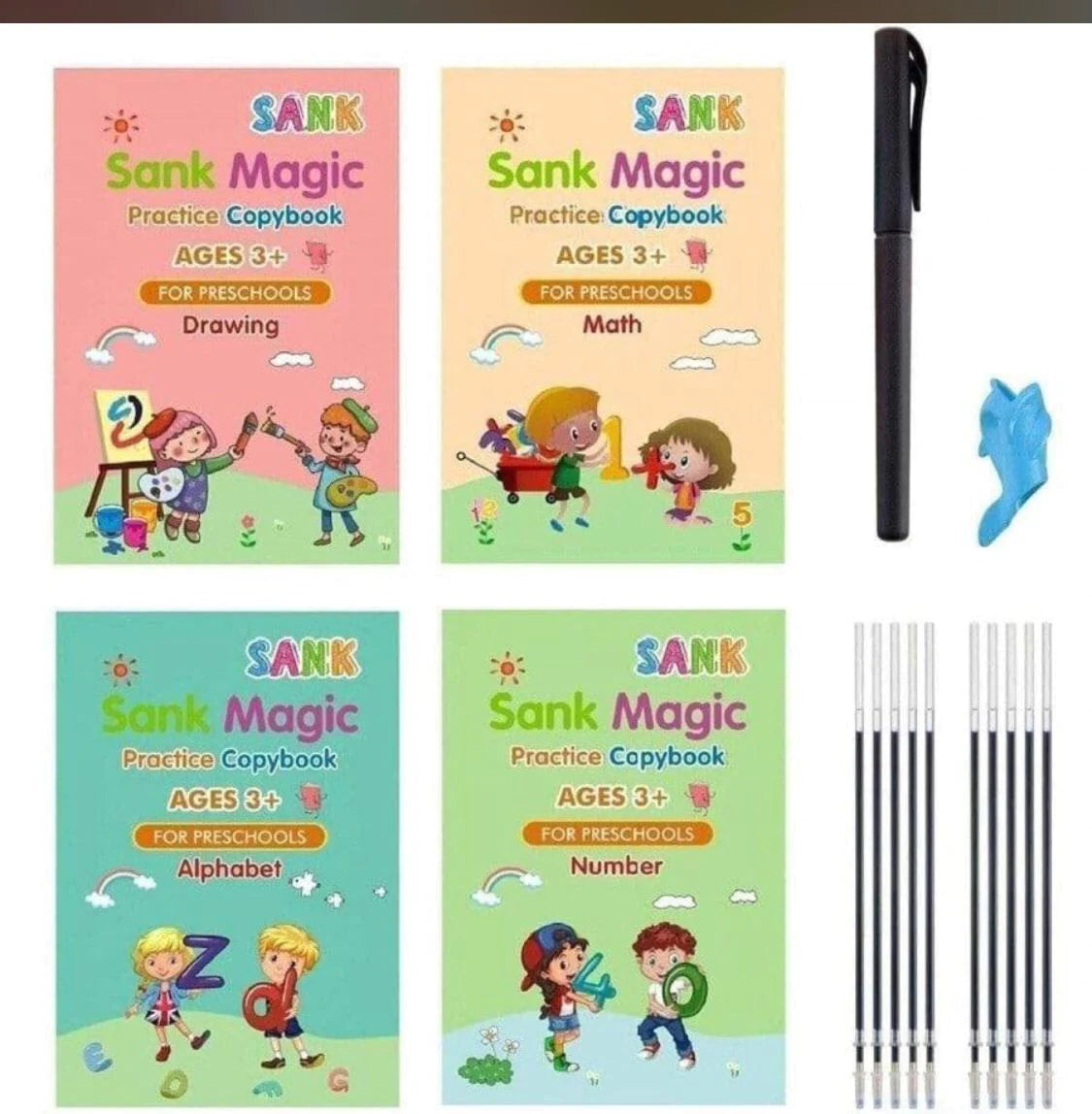 Elevate your handwriting and artistic skills with our innovative Sank Magic Calligraphy Copybook Set – your all-in-one solution to mastering beautiful handwriting and basic math operations, along with enhancing your drawing capabilities. This comprehensive set is designed with both beginners and enthusiasts in mind, offering a unique blend of functionality and fun in learning.